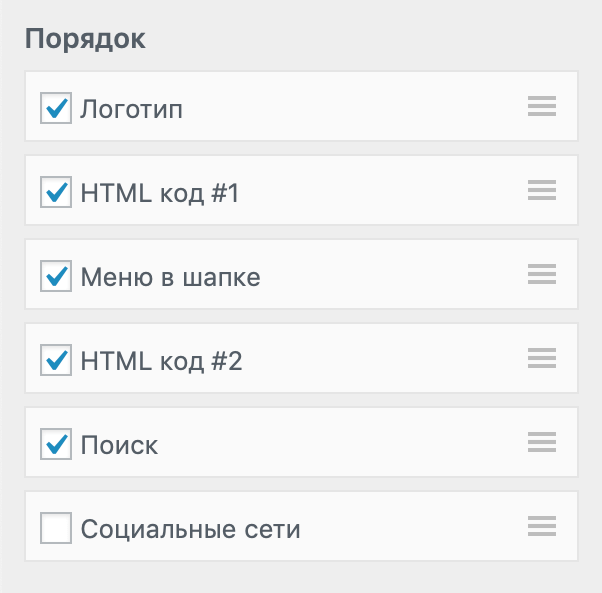 В этом разделе можно задать логотип сайта, указать любой произвольный HTML-код в шапке (например адрес офиса, номер телефона, вывести кнопку обратного звонка и т.д). Можно настроить произвольный порядок вывода блоков: